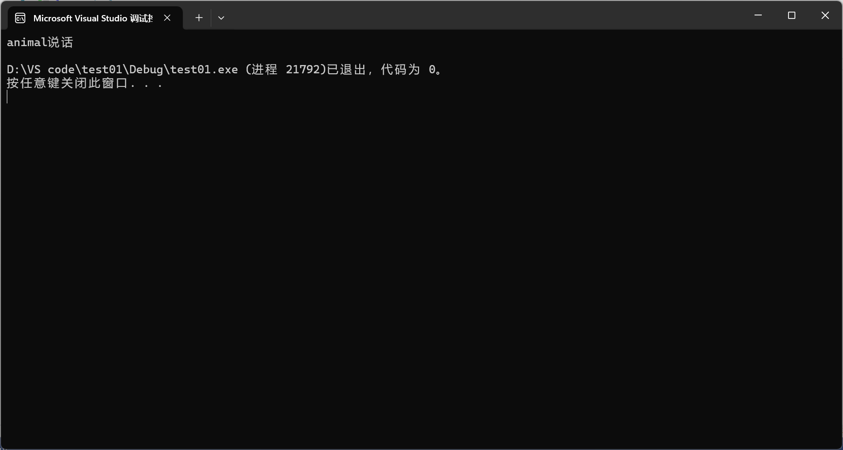 1 2 3 4 5 6 7 8 9 10 11 12 13 14 15 16 17 18 19 20 21 22 23 24 25 26 27 28 29 30 31 32 33 34 35 36 37 38 39 40 41 42 43 44 45 class animal {public : animal () { cout<<"动物活了" <<endl; } virtual void speak () { } virtual ~animal () { cout<<"动物死了" <<endl; } };class cat :public animal {public : string *name=NULL ; cat (string n) { cout<<"猫活了" <<endl; name=new string (n); } void speak () { cout<<"1" <<endl; } ~cat () { if (name!=NULL ) { cout<<"猫死了" <<endl; delete name; name=NULL ; } } };void test01 () { animal* a=new cat ("aa" ); a->speak; delete a; }