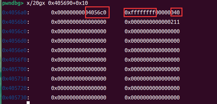 首先泄露stderr,memory是dword类型的数组,一个单位4个字节,所以要到stderr就是(0x202060-0x201ff8)/4转换10进制就是26,所以memory[-26]是stderr低字节,memory[-25]是高字节