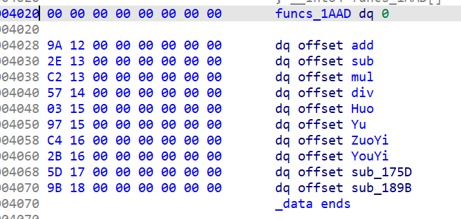 IDA main 1 2 3 4 5 6 7 8 9 10 11 12 13 14 unsigned __int64 __fastcall main (__int64 a1, char **a2, char **a3) { char s[3080 ]; unsigned __int64 v5; v5 = __readfsqword(0x28u ); sub_11E9(); memset (s, 0 , 0x300u LL); write(1 , "opcode: " , 8uLL ); read(0 , s, 0x300u LL); sub_1230(qword_40C0, (__int64)s, 768LL ); sub_19F1(qword_40C0); return v5 - __readfsqword(0x28u ); }