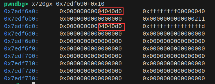 接着索引 -1+(-3)=-4 刚好就是记录 stack 指针的位置,就可以将 0x4040d0写进去