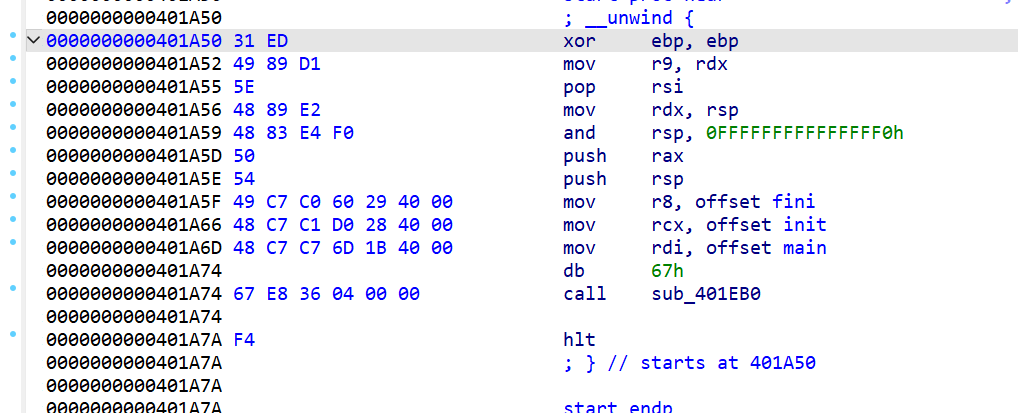 main 1 2 3 4 5 6 7 8 9 int __cdecl main (int argc, const char **argv, const char **envp) { ssignal(14 , timeout); alarm(60 ); puts ("=== Welcome to SECPROG calculator ===" ); fflush(stdout ); calc(); return puts ("Merry Christmas!" ); }